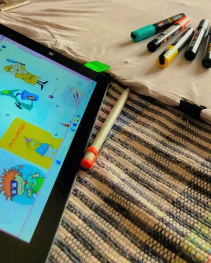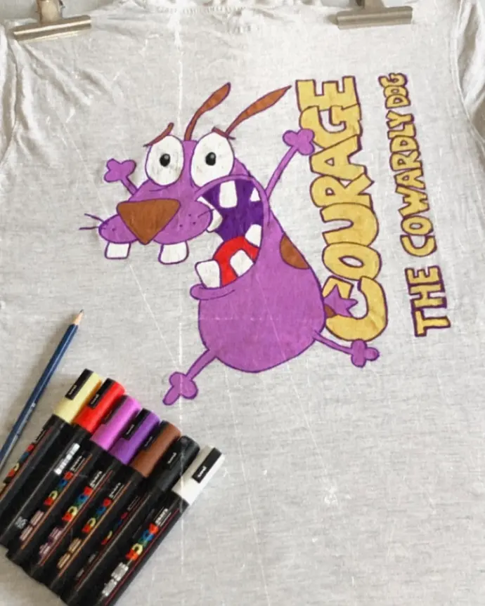 Como era la primera vez que probaba diseñar y pintar una camiseta, elegí una camiseta vieja y empecé a diseñar.