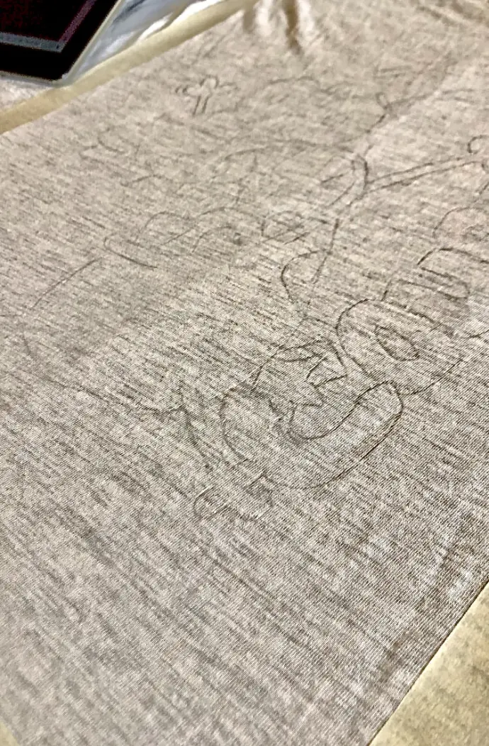 Yo decidí dibujar a mano alzada, utilicé un lápiz común aunque lo más recomendable es usar lápices de tiza que suelen utilizarse para la costura. Tienen una mayor precisión, se pueden usar en diferentes materiales y además es fácil eliminar su huella en el lavado.
